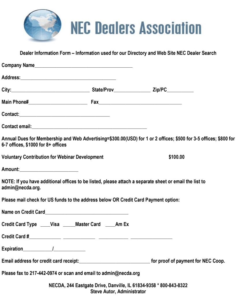 Please click the NEC Dealer Information form below to download and print: